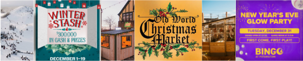 Winter Stash – You played Bird Bash in October, and Cash Clash in November, so now is your chance to play Winter Stash in December. Play your way to winning up to $300,000 every Thursday in December. Then on December 20, visit Potawatomi Casino Hotel for the Season Finale with even more chances to win!